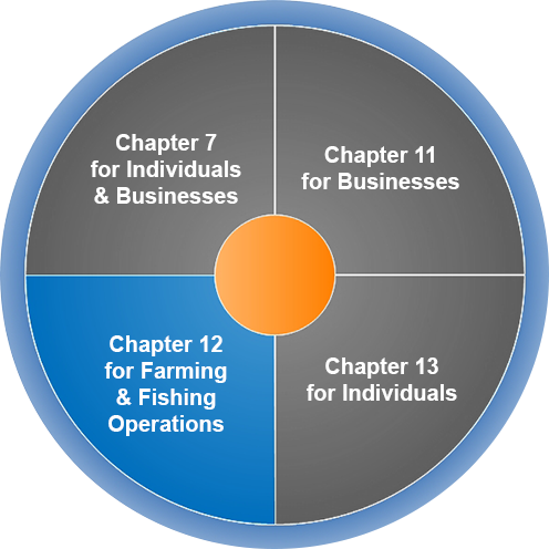 Chapter 12 bankruptcy is for “family farmers” or “family fishermen.” This process is much more streamlined that the complex processes of Chapter 11 or Chapter 13.